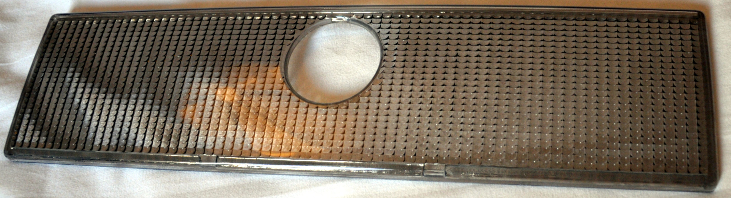 Ce cabochon représente la partie extérieure du bandeau inter-feux. Il est teinté dans la masse et réalisé dans un matériau insensible aux UV. Il est nécessaire de récupérer la partie arrière comprenant les vis de fixation pour reconstituer une nouvelle plaque centrale complète.